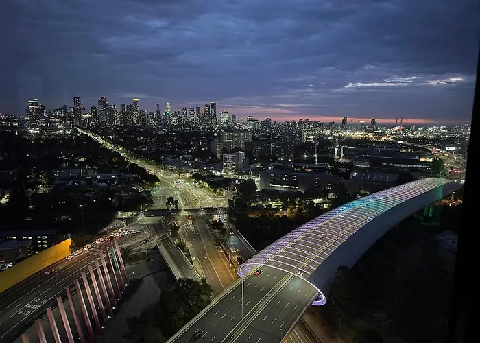 Melbourne skyline spectacularアパートメントからは都市の景色を眺めることができます。
